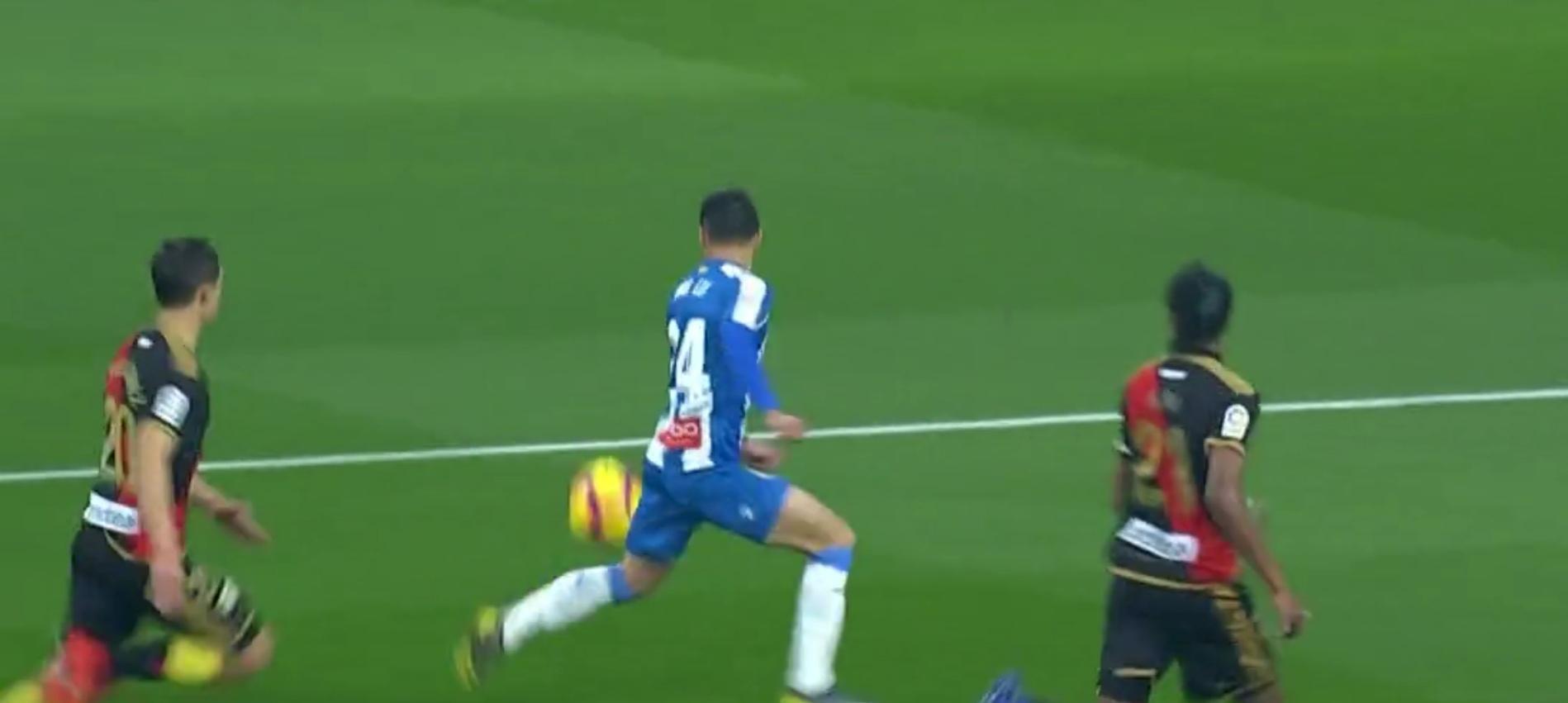 下半场第69分冲,武磊禁区内灵巧过掉两名防守队员形成单刀,巴列卡诺队员无奈铲球犯规。凭借武磊制造的点球,西班牙人队7号中锋博内拉罚中点球,扳平了比分。比赛中武磊多次制造犯规,让人们对他刮目相看!
