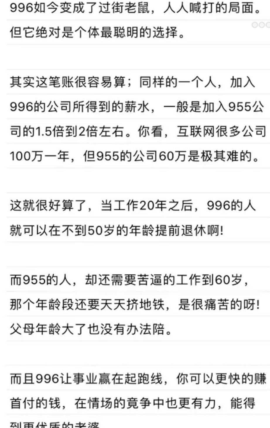 3、996不会像955的一样,艰难的工作到60岁才退休。