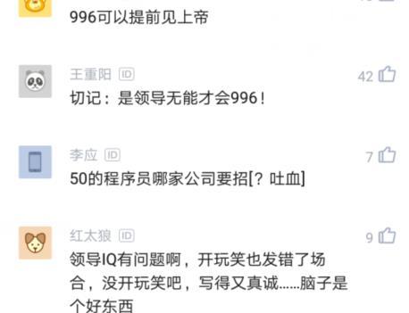 在职场上现在慢慢的都流行加班,而且加班的标准都是996,有的加班甚至没有任何加班费,对于这样的加班模式没有几个员工能接受,而这种高强度的加班时间在互联网行业很常见,有的领导为了让员工更好的接受996加班模式,往往会对员工做思想工作,可是这样的效果并不理想,有位男子在职业论坛留言,分享了自己领导,给员工灌输996的思想工作经历,领导在群里的发关于996的好处,领导:996可以不到50就提前退休,到底怎么回事?请往下看。