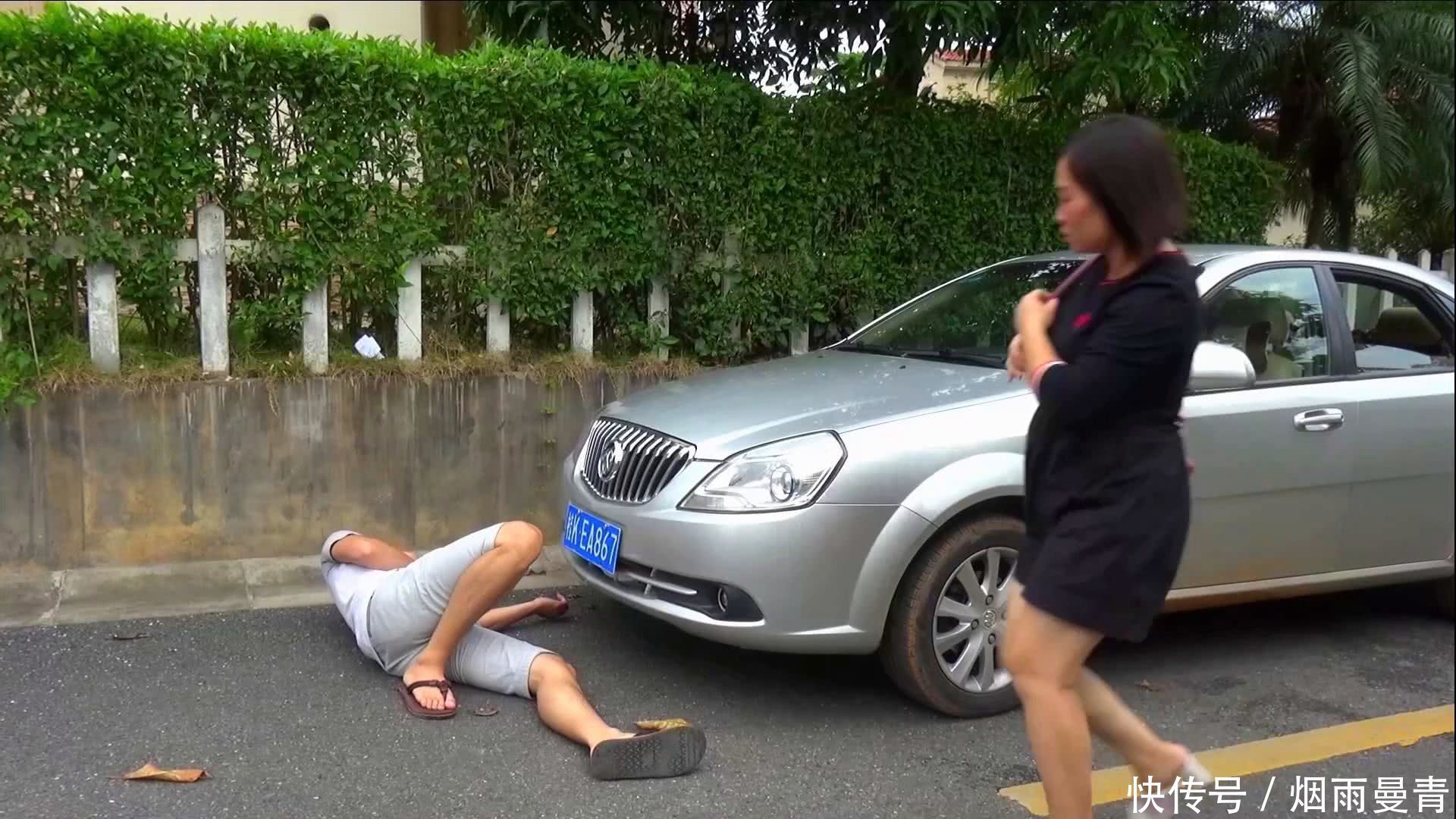 如果是在正前方,会有被压在车底的危险,而在侧面的话,既能够制造被撞的事实,又避免了受伤。万一碰到一紧张就踩油门的人,那可要被压在车底,真的要伤筋动骨了。