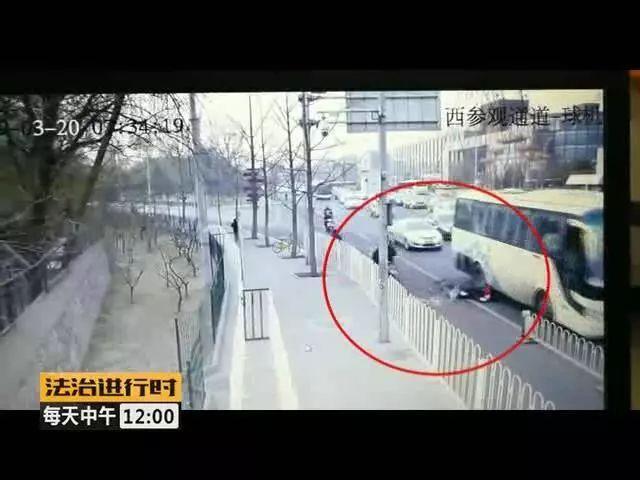 这是发生在海淀区中关村北大街与清华西路交叉口南侧的一幕一名女子骑着自行车撞上了正常行驶的大巴车那么这名骑车人为什么会平白无故地撞上大巴车的侧边呢?