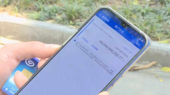 手机银行,这一查,吓了一跳!账户余额显示:-99,999,992,253.17 (负999亿余元)。