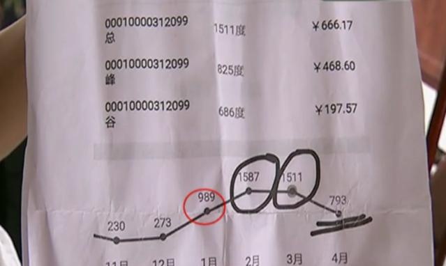 金女士是小区内的普通住户,以往家中的月用电也就200多度,如今的用电量让他难以接受。金女士拉出来了电费单,可以看到去年11月与12月份用电都是正常的,可是从1月份开始电费不断向上飙升。1月份的用电为989度,2月份用电1587,3月份是1511。金女士表示,他们家中不用中央空的时候是200多度每月,开了空调之后达到1511度,这让她怀疑这不是空调造成的。