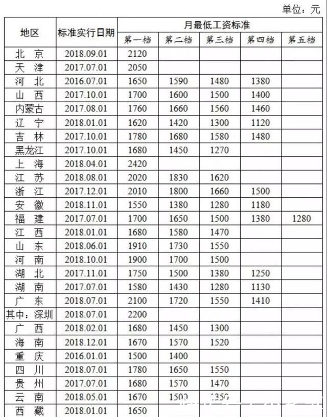 关乎工资和月收入啊,有必要了解的是,2019年1月10日,人社部公布全国各地区月最低工资标准情况(截至2018年12月),其中,上海月最低工资标准达到2420元,为全国最高。上海、广东、北京、天津、江苏、浙江这6个省份,月最低工资标准超过2000元。北京小时最低工资标准第一档达到24元。
