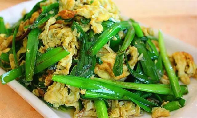 新鲜韭菜洗净切碎,与鸡蛋捣匀,用素油、食盐同炒至熟。功能温中养血,温肾暖腰膝,壮阳。