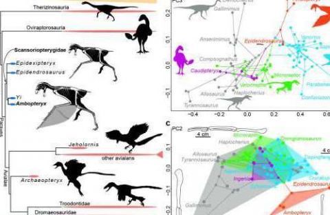 据介绍,在脊椎动物漫长的演化史中,翼龙、鸟类和蝙蝠独立演化出形态迥异的飞行结构。相较翼龙和蝙蝠不完整的化石记录,随着不断发现的带羽毛恐龙和早期鸟类化石,尤其得益于中国中晚侏罗世的燕辽生物群和早白垩世的热河生物群,使有关鸟类飞行起源这一重要科学问题取得重要进展。其中,作为恐龙家族中最为怪异的类群,善攀鸟龙类生活在中晚侏罗世,此前发现的仅有宁城树栖龙、胡氏耀龙和奇翼龙三个属种,善攀鸟龙类形态特殊,俨然是恐龙和鸟类的“混合体”,并一度被认为是和鸟类具有最近亲缘关系的兽脚类恐龙。