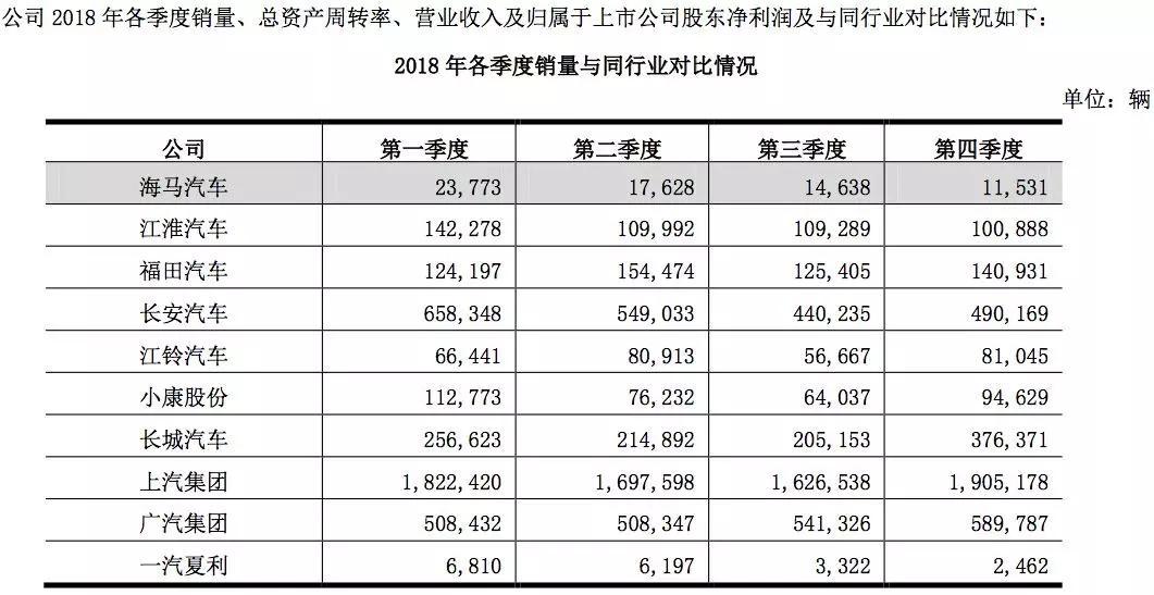 2018年,*ST海马全年实现营业收入50.47亿元,同比下降47.88%;净利润亏损16.37亿元,亏损幅度同比扩大64.64%。*ST海马表示,2018年度受外部大环境、公司品类战略落地和产品进一步聚焦的影响,全年汽车销量为6.78万辆,同比大幅下滑51.88%,汽车生产量也下滑55.24%。