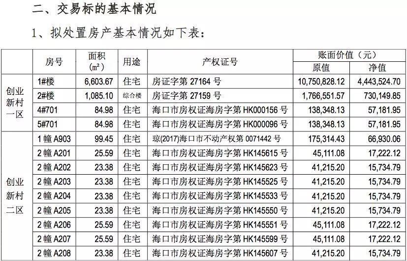 此外,这次拟出售住宅的面积绝大多数在23平方米~28平方米之间,按原值计算,均价只有2000元/平方米左右。当然,原值只是*ST海马当初购买时的成本,最终处置价格以成交价为准。