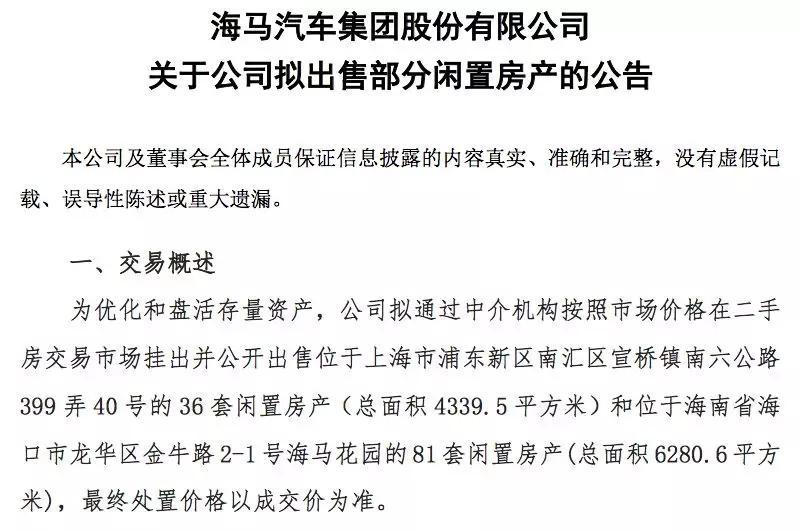 昨天晚上,*ST海马发布了一份《关于公司拟出售部分闲置房产的公告》,长达8页的公告里,密密麻麻全都是房产信息: