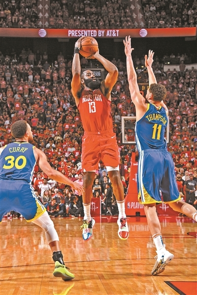 本报讯(记者 刘艾林)5月6日的NBA西部半决赛第四场“火勇大战”,依然是最吸引球迷眼球的焦点对决。火箭在主场以112比108战胜勇士,将两队系列赛大比分扳成2比2平。比赛中哈登38分 10篮板的两双、杜兰特的34分、库里30分的复苏都值得一提,不过最有意思的还是哈登和格林这一对儿老冤家之间发生的纠缠,这次还加上了杜兰特。