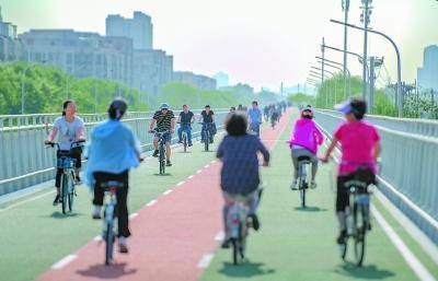随着更多慢行系统“连点成线、连片成网”,本市正在建设步行和自行车友好城市  自行车专用路成了网红路