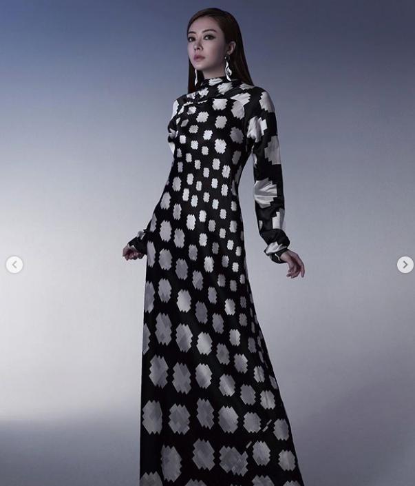 熊黛林化着浓浓的烟熏妆又美又飒,再配上一袭印花修身长裙更是耀眼十足,纤细腰肢超抢镜。