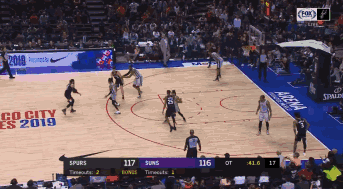 马刺和太阳加时赛最后0.3秒,米尔斯中投命中!准绝杀!果然,马刺只有一个超巨,那就是米神!