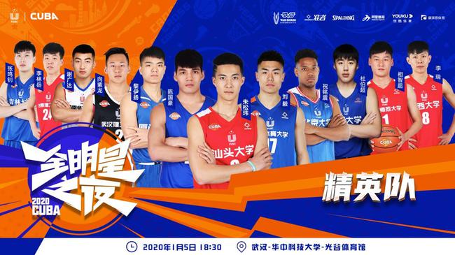 精英队:朱松玮(汕头大学,前锋)、祝铭震(北京大学,前锋)、刘毅(北京体育大学,前锋)、陈国豪(广东工业大学,中锋)、黎伊扬(厦门大学,后卫)、相智超(华东师范大学,前锋)、李瑞(山西大学,后卫)、谢广达(湖南师范大学,后卫)、杜伯超(厦门大学,中锋)、李林岳(太原理工大学,后卫)、张鸣钊(吉林大学,前锋)、向紫龙(武汉理工大学,后卫)