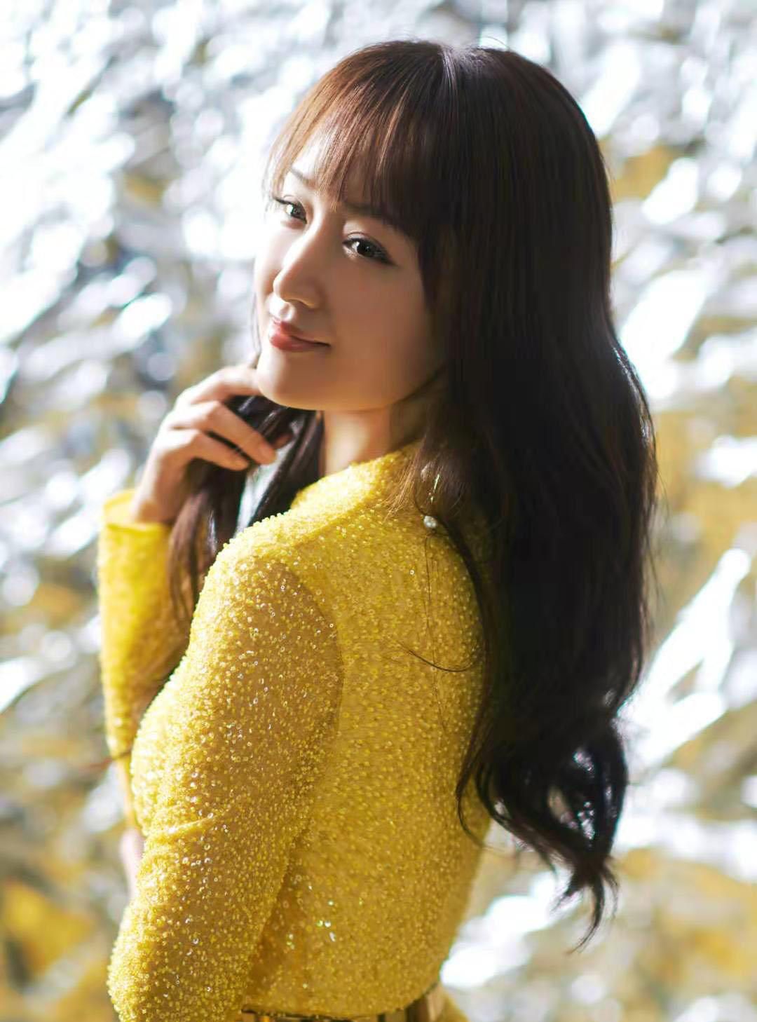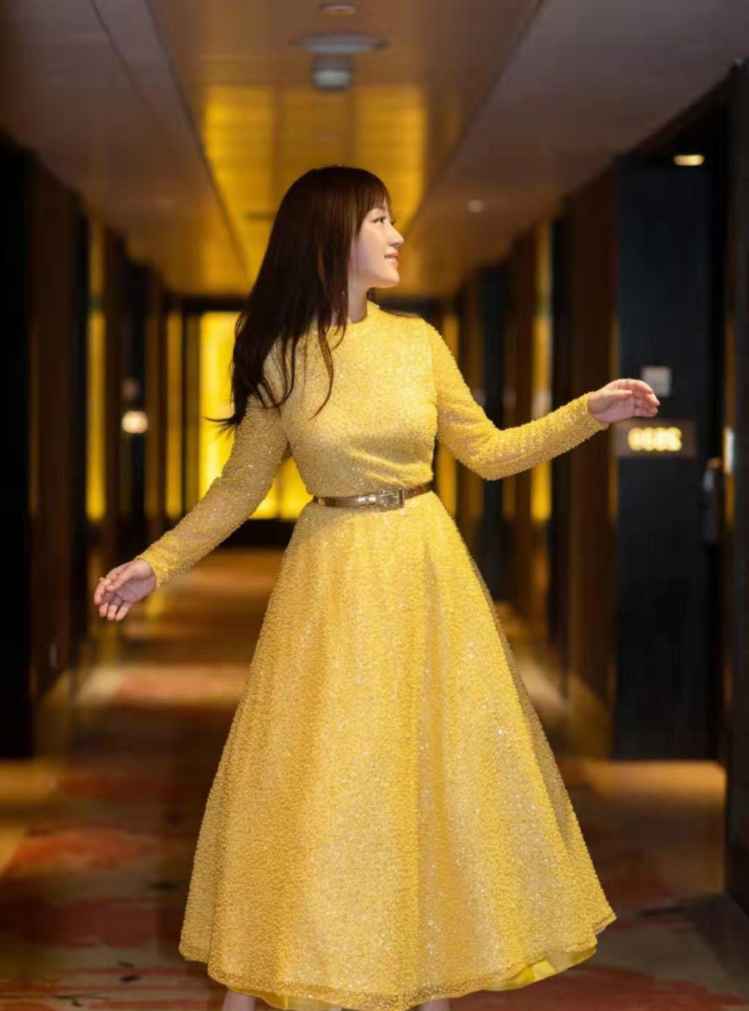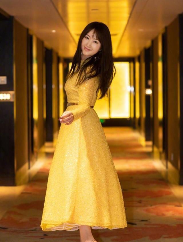 [人物]杨钰莹真是时光尤物,穿金黄色连衣裙配披肩长发,看着顶多25岁【14P】