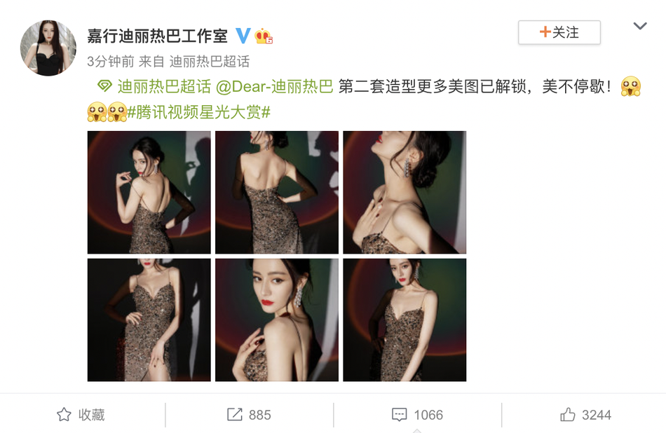 12月20日,迪丽热巴工作室在微博分享她今晚参加星光大赏的第二套造型。照片中,迪丽热巴身穿bling bling的吊带长裙,秀出凹凸有致的身材曲线,高贵冷艳。手微撩吊带的那一刻,让人内心被击中,真人间绝色!