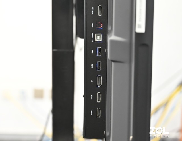 在机器的侧面,NETRIX NX652RC会议平板配置了多种接口,常见的HDMI以及DP接口一应俱全,同时还配置了多个USB接口。本机搭配了便于移动的支架,底部配有四个滑轮,移动起来不费力气,应用场景更为丰富。