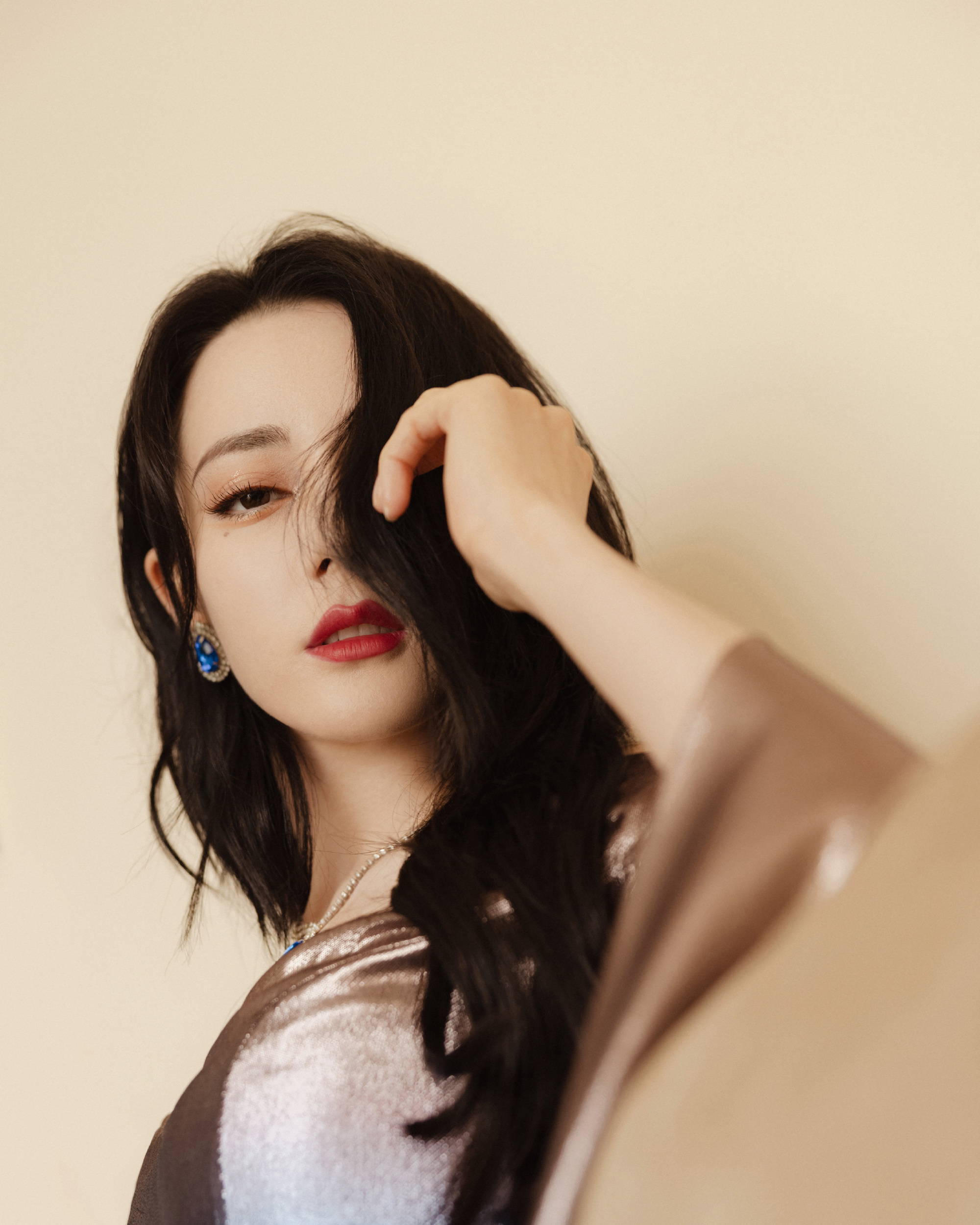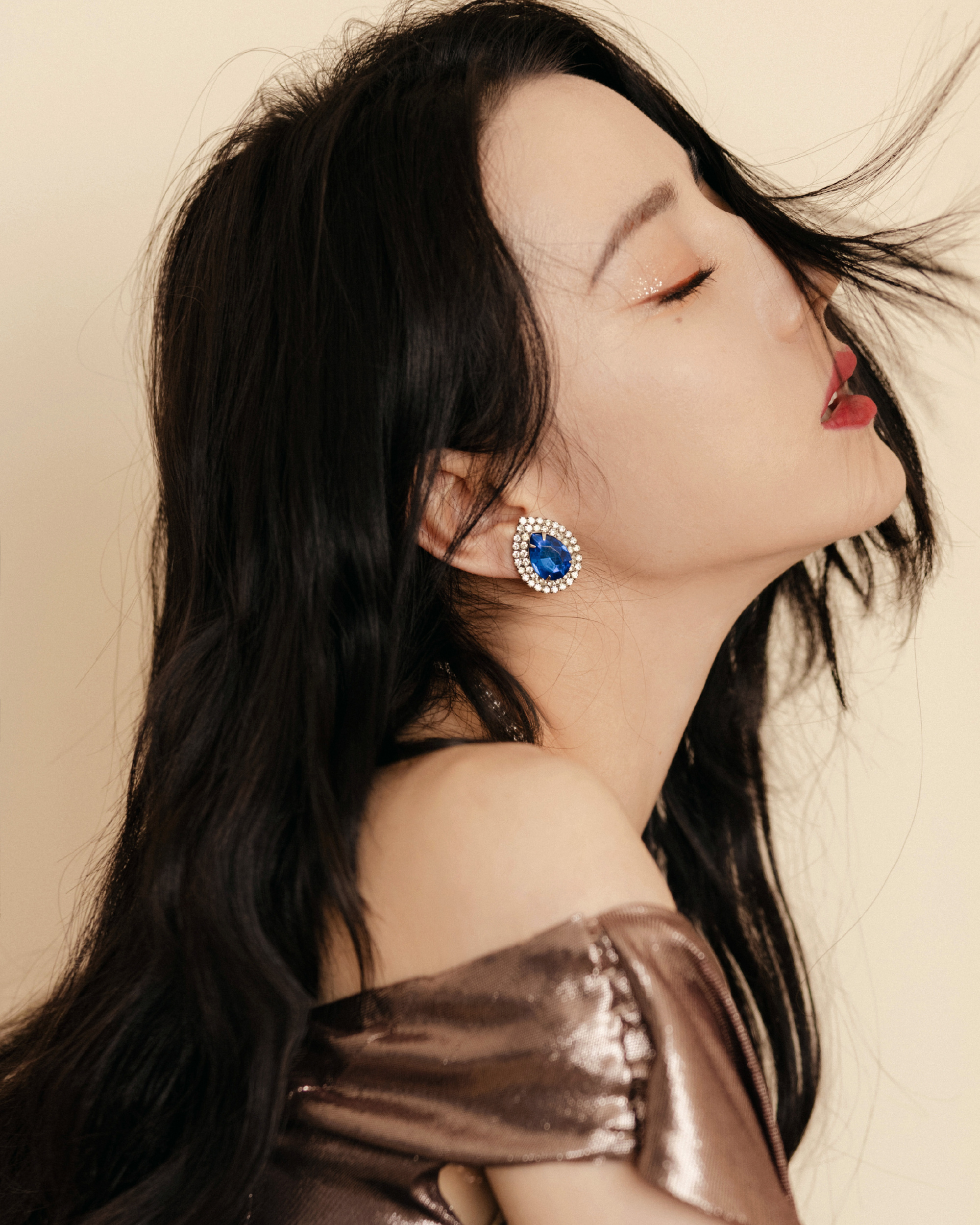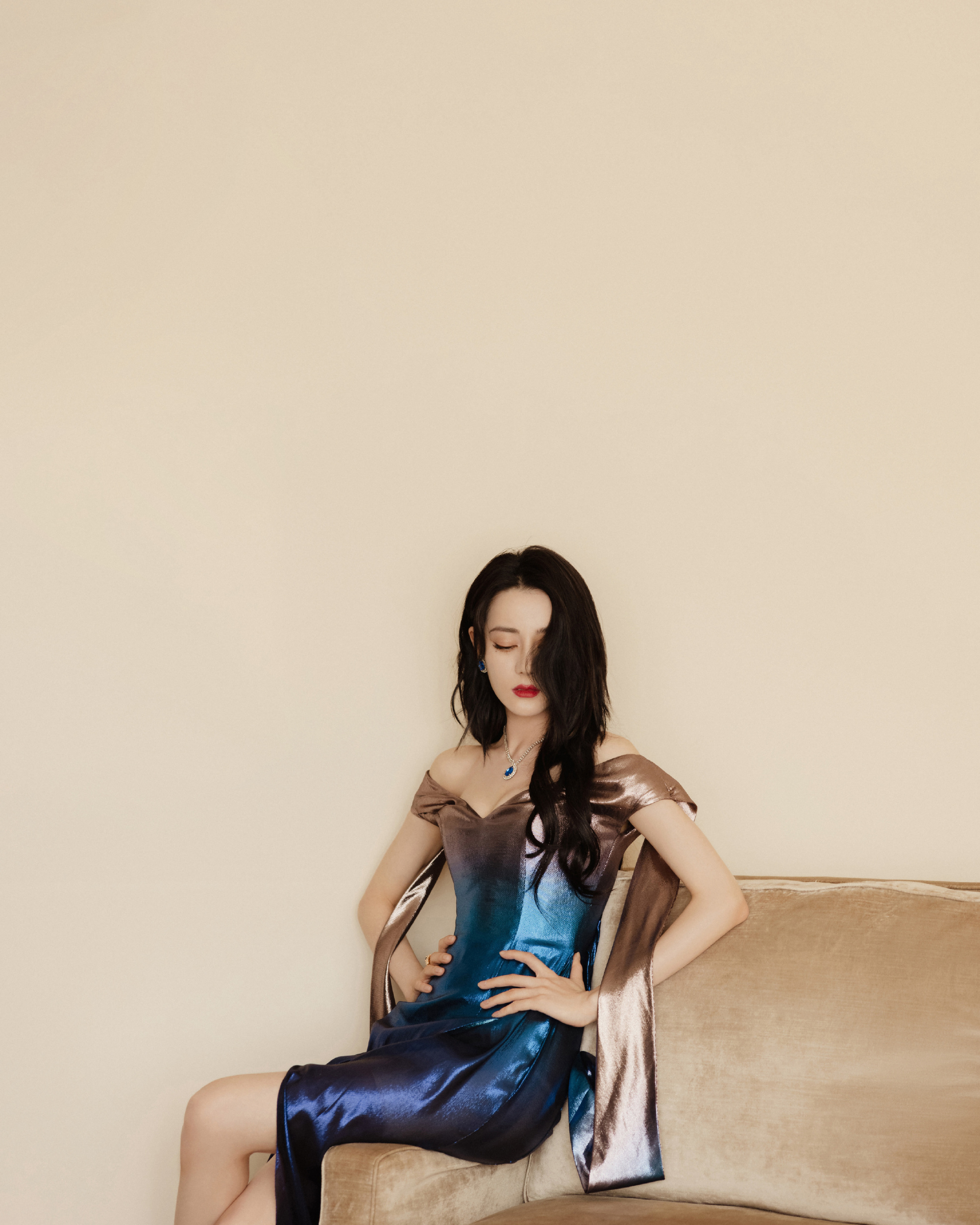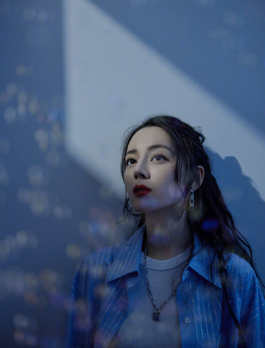 [人物]迪丽热巴身穿流光人鱼裙与蓝色珠宝呼应 水晶烫钻衬衫清甜的美好[17P]