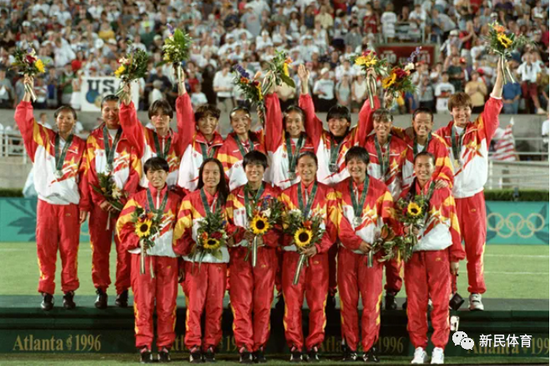 1996年亚特兰大奥运会,水庆霞(后排左三)代表中国女足历史性摘得银牌