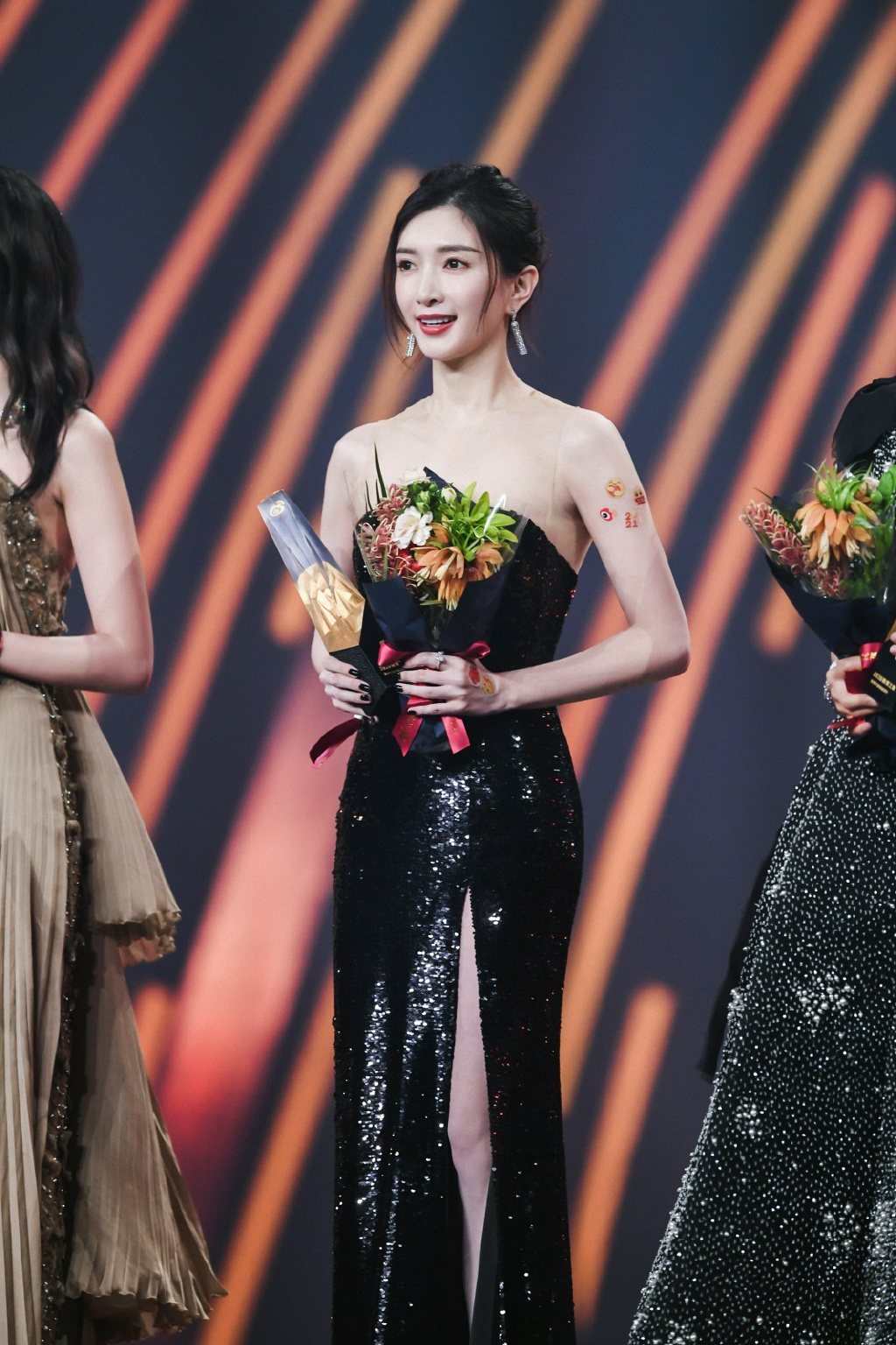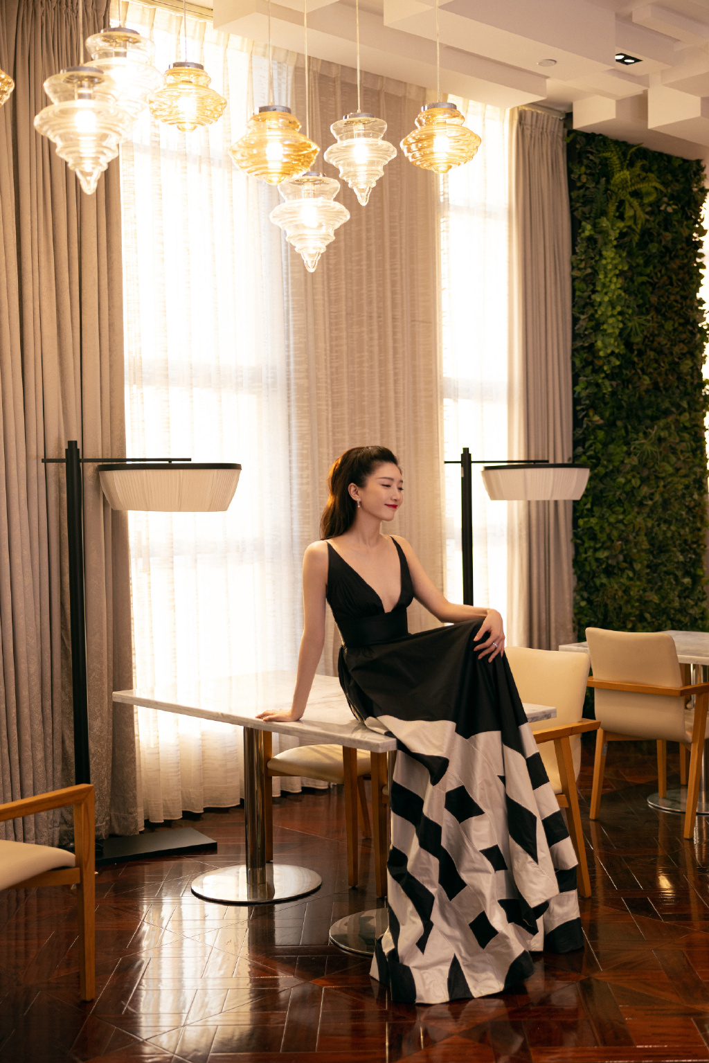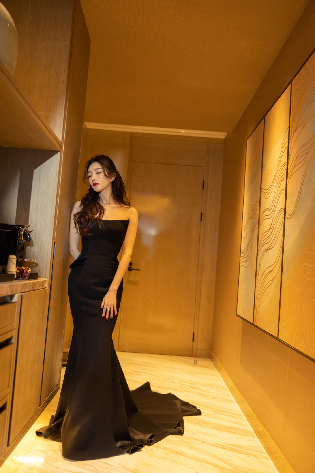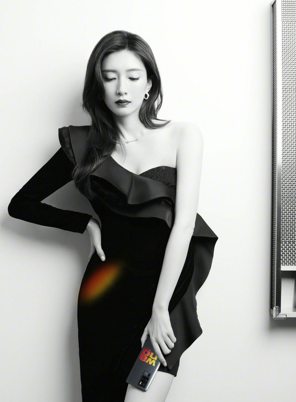一袭黑色长裙尽显修长的身材