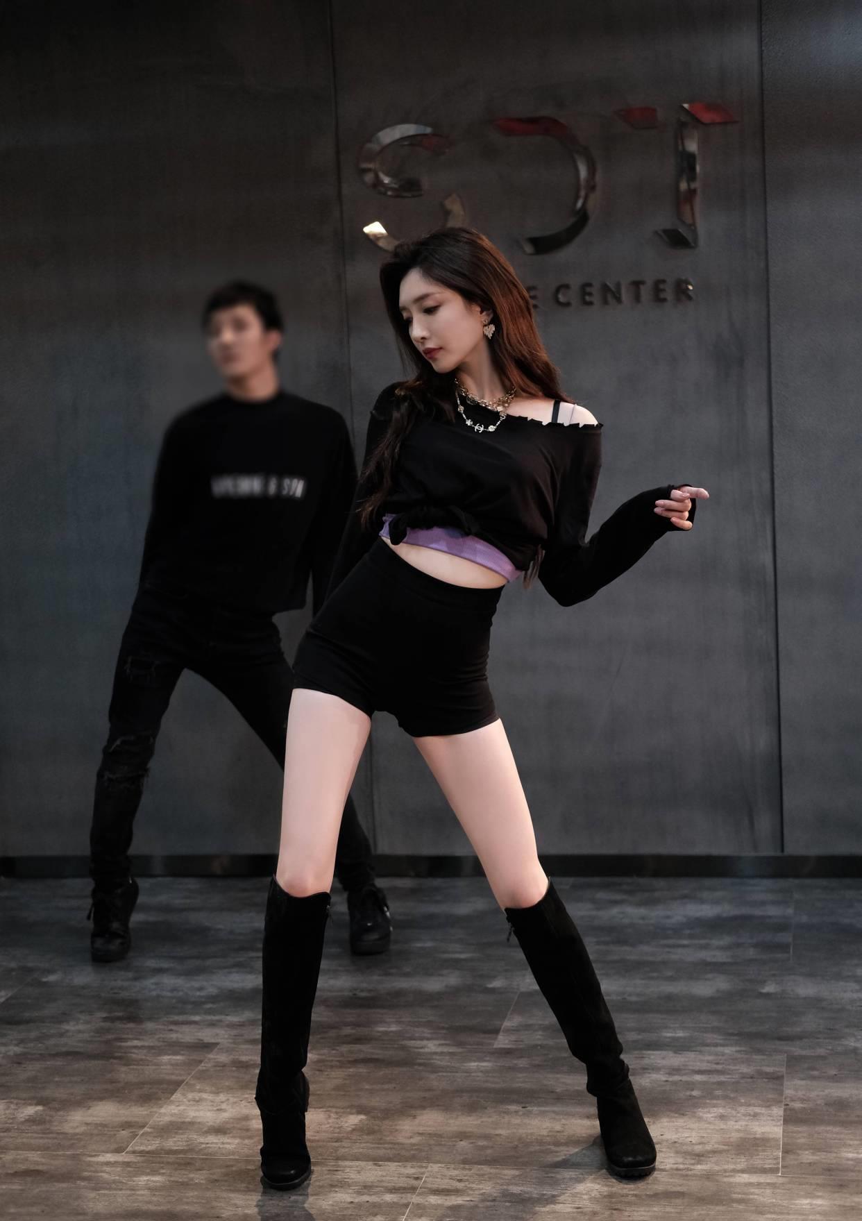 一身黑衣短裤又很奔放,散发着野性