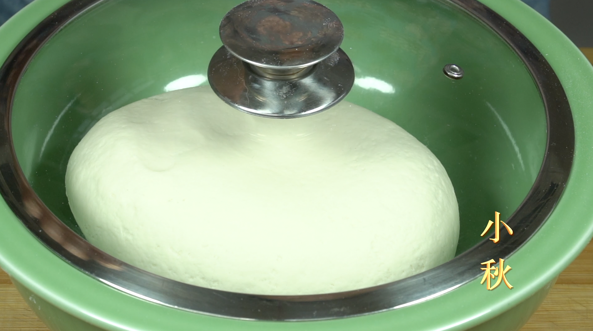 下手揉成光滑的面团后,盖上盖子放在一边醒面。