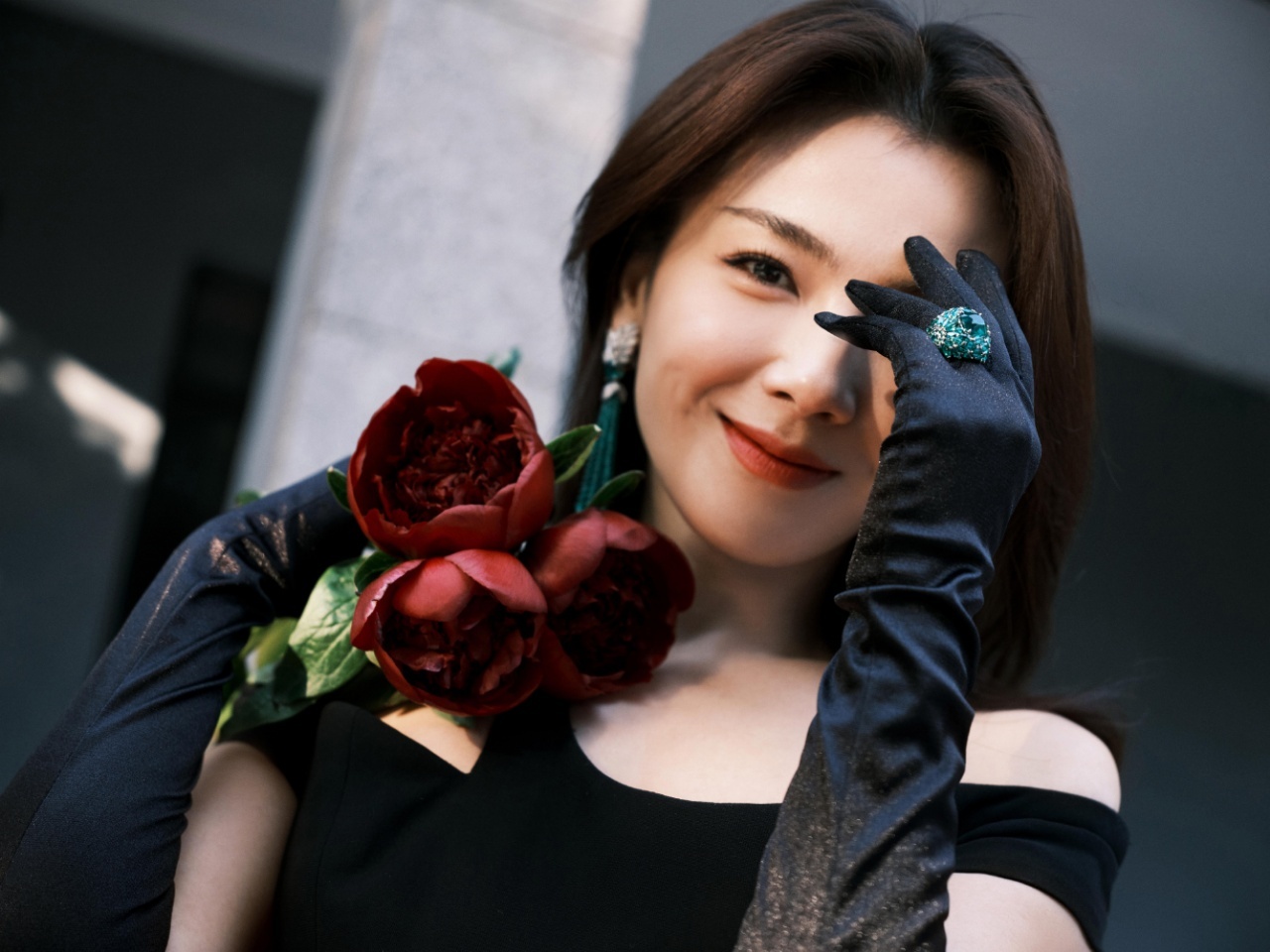 [人物]刘涛又美了,赤焰入墨曳地黑裙,搭配耳间流动的流苏细节珠宝[15P]