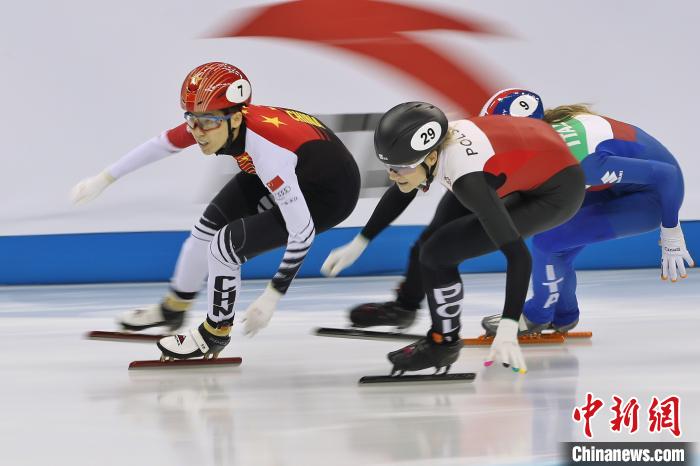4月7日,北京队运动员在速度滑冰女子500米比赛中。当日,“相约北京”冰上项目测试活动速度滑冰比赛在北京国家速滑馆拉开帷幕。 中新社记者 韩海丹 摄