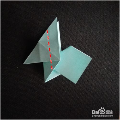 15. 接着,沿着虚线把“耳朵”的部分折到里面。