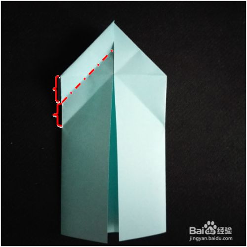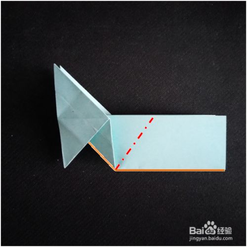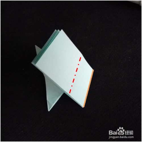 12. 再根据虚线位置把上面的部分折下来,注意折的时候虚线要与下面的橘黄色边平行。