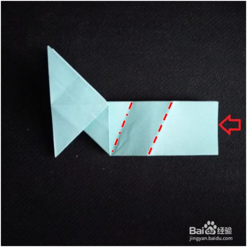 13. 我们把刚才折叠的部分展开,可以看到两道折痕,沿着折痕将右边的部分压进去,虚线为正折,虚点线为反折。
