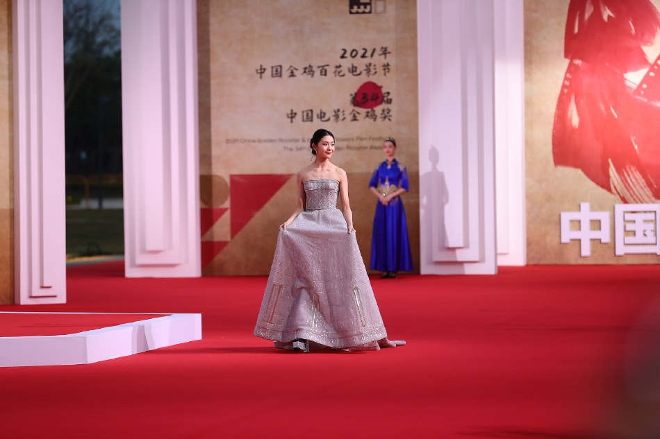 [人物]刘浩存亮相金鸡奖红毯 身穿抹胸钻石礼服青春感十足[5P]