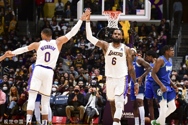 [篮球世界]詹姆斯26+6湖人连胜 森林狼大将缺阵末节崩盘