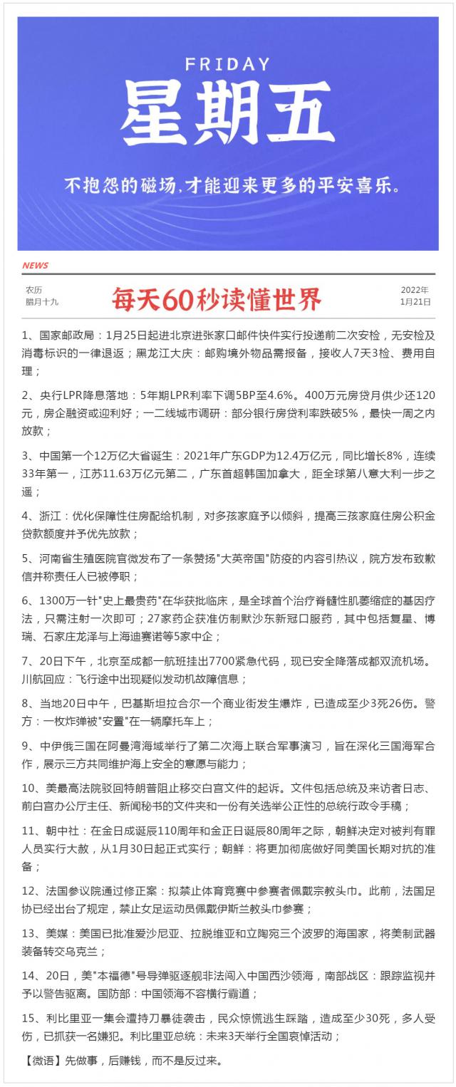 [分享]2022年1月21日 星期五,在这里【每天60秒读懂世界】