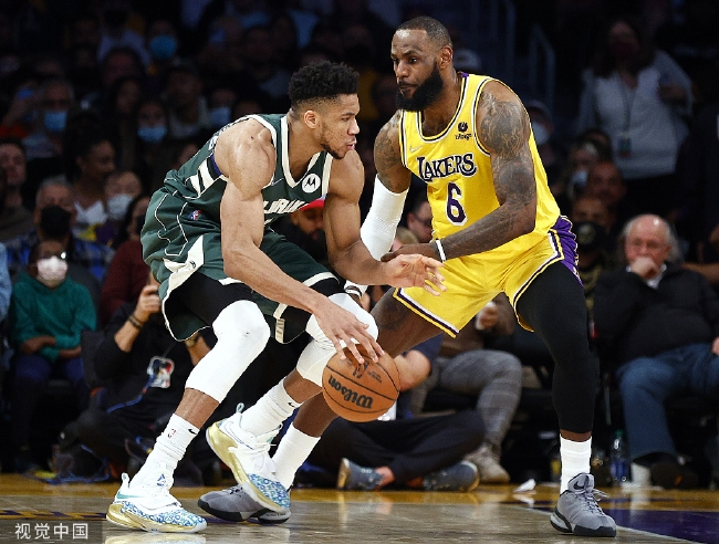 跟“字母哥”安特托昆博相比,詹姆斯显现出岁月的侵蚀。两人几次一对一,“字母哥”很轻松地转身投篮得手,过了巅峰期的詹姆斯,已经挡不住年轻力壮的安特托昆博。