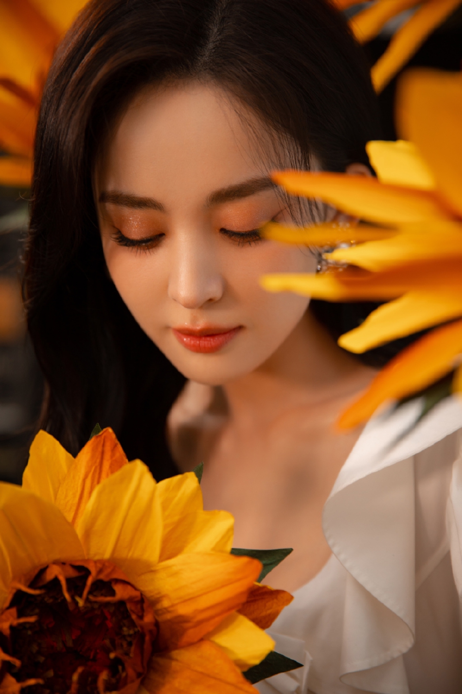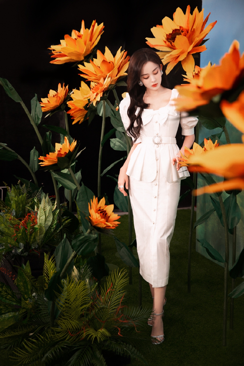 [人物]娜扎白裙置身花丛身材婀娜 大秀纤细锁骨气质优雅[10P]