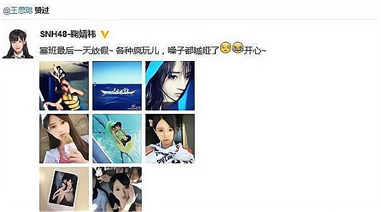 王思聪在她的社交平台频频点赞,还邀请她的团体参加聚会。不过鞠姐也是“人间清醒”,深知王校长换女朋友像换衣服,所以从未理睬过他。