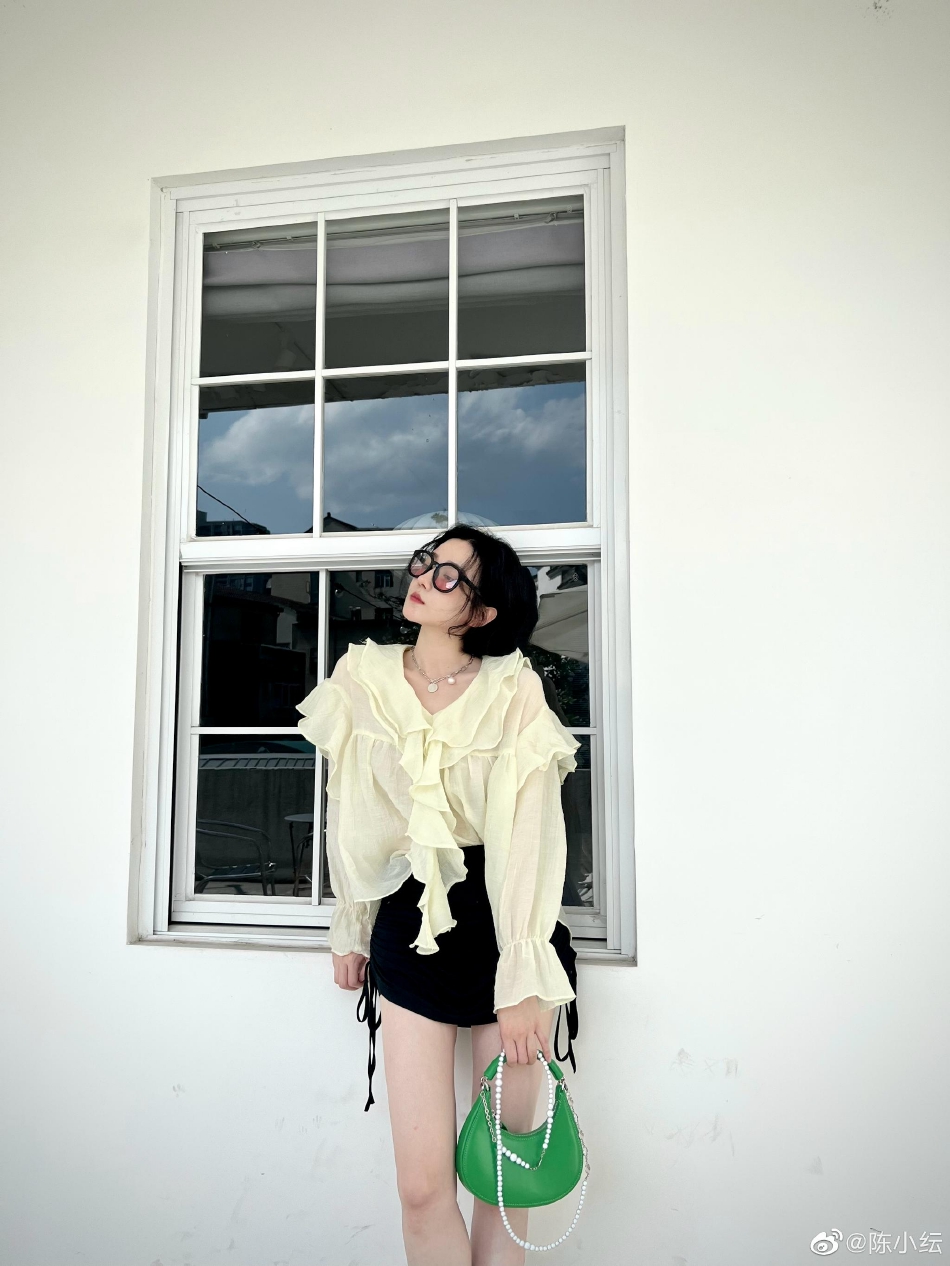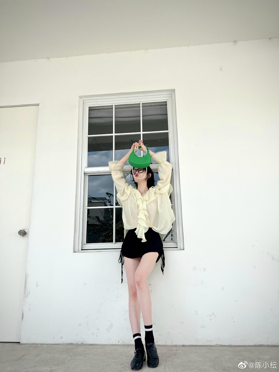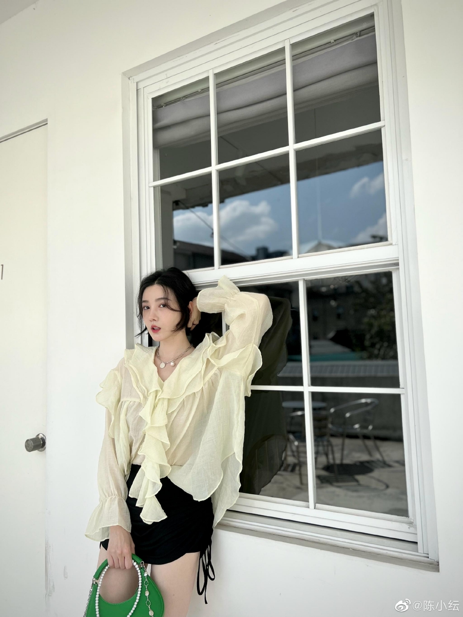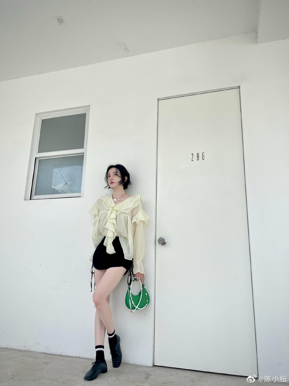 4月24日,陈小纭在微博晒出一组初夏清新感写真。照片中,她身穿米黄色上衣,下搭黑色短裤,可爱满分。