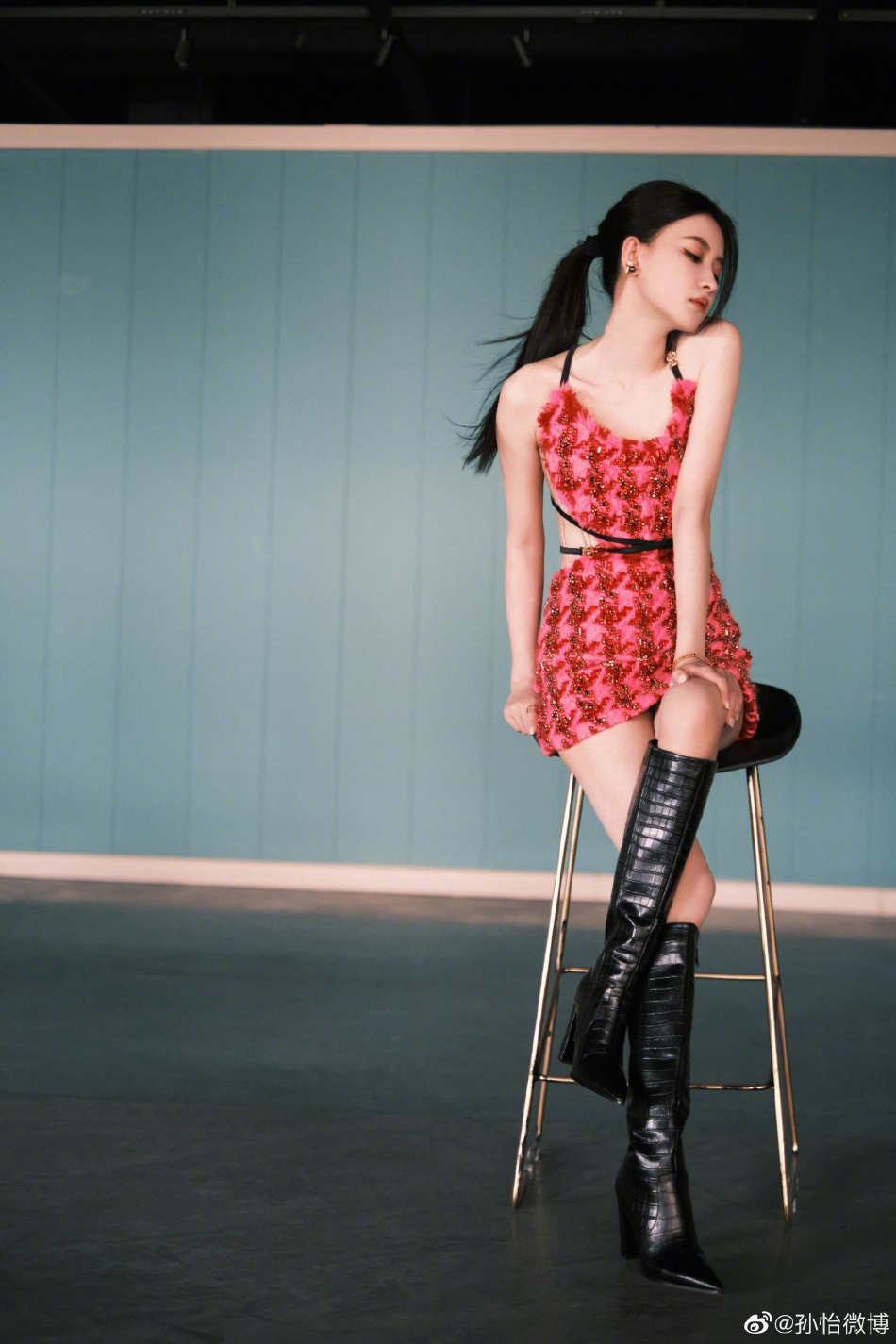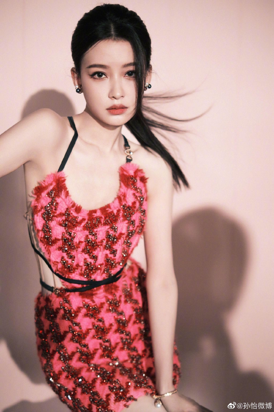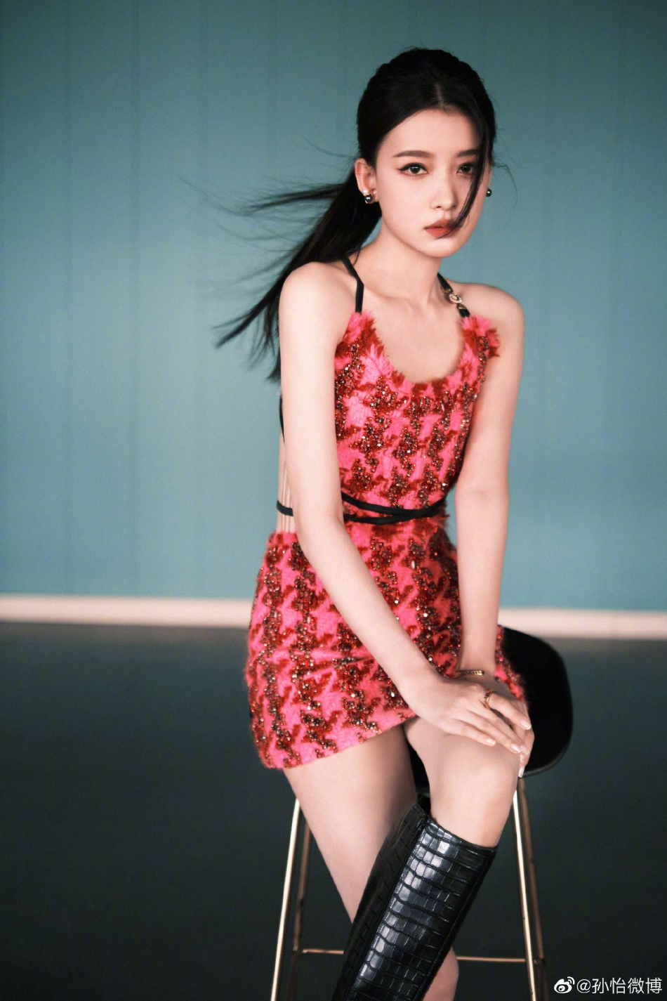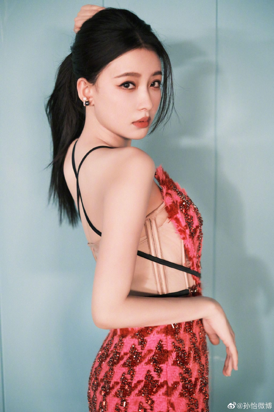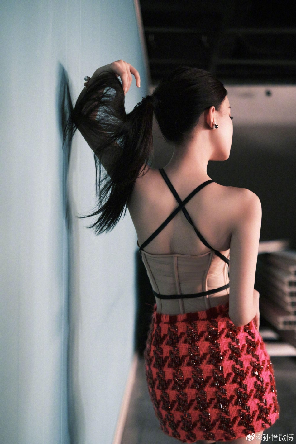 11月1日,孙怡分享了一组自己的宣传照片。照片上的孙怡身穿粉色千鸟格连衣裙,后背的绑带勾勒出性感美背,露出肩膀和锁骨,皮肤雪白,身材优越。