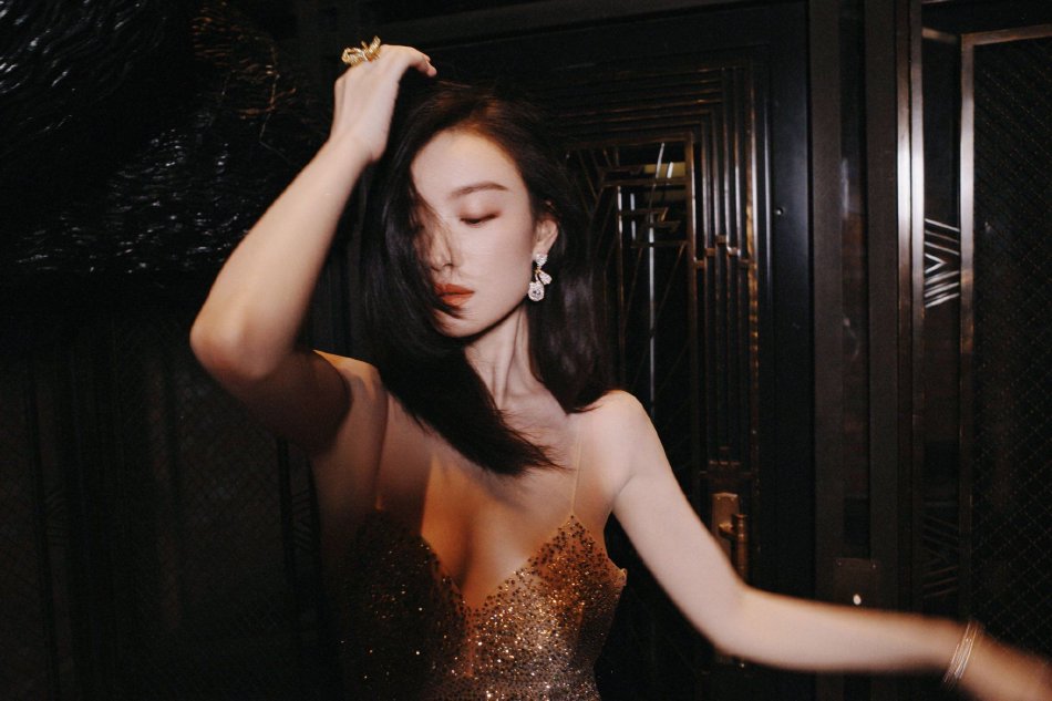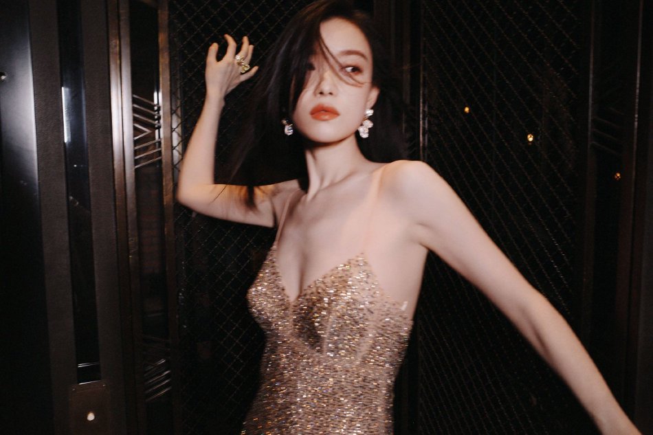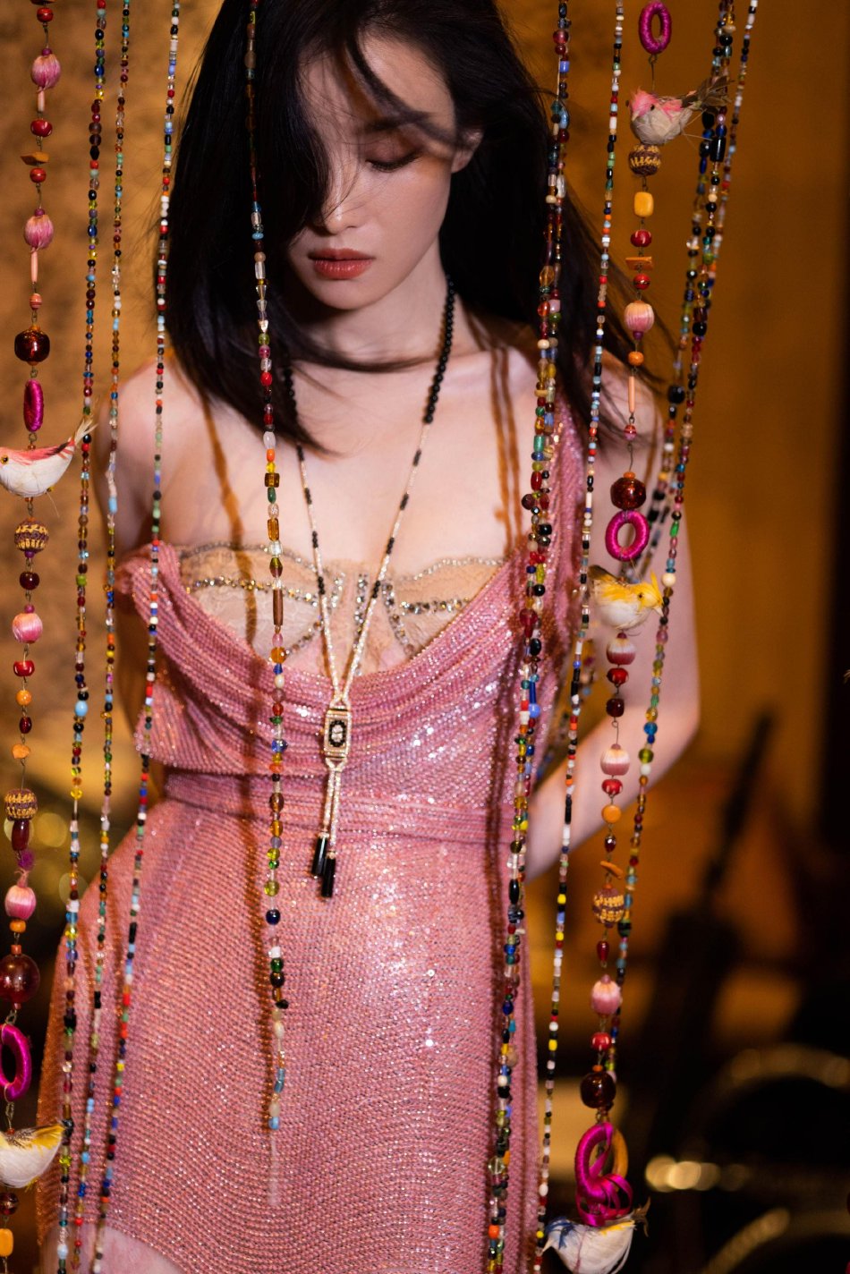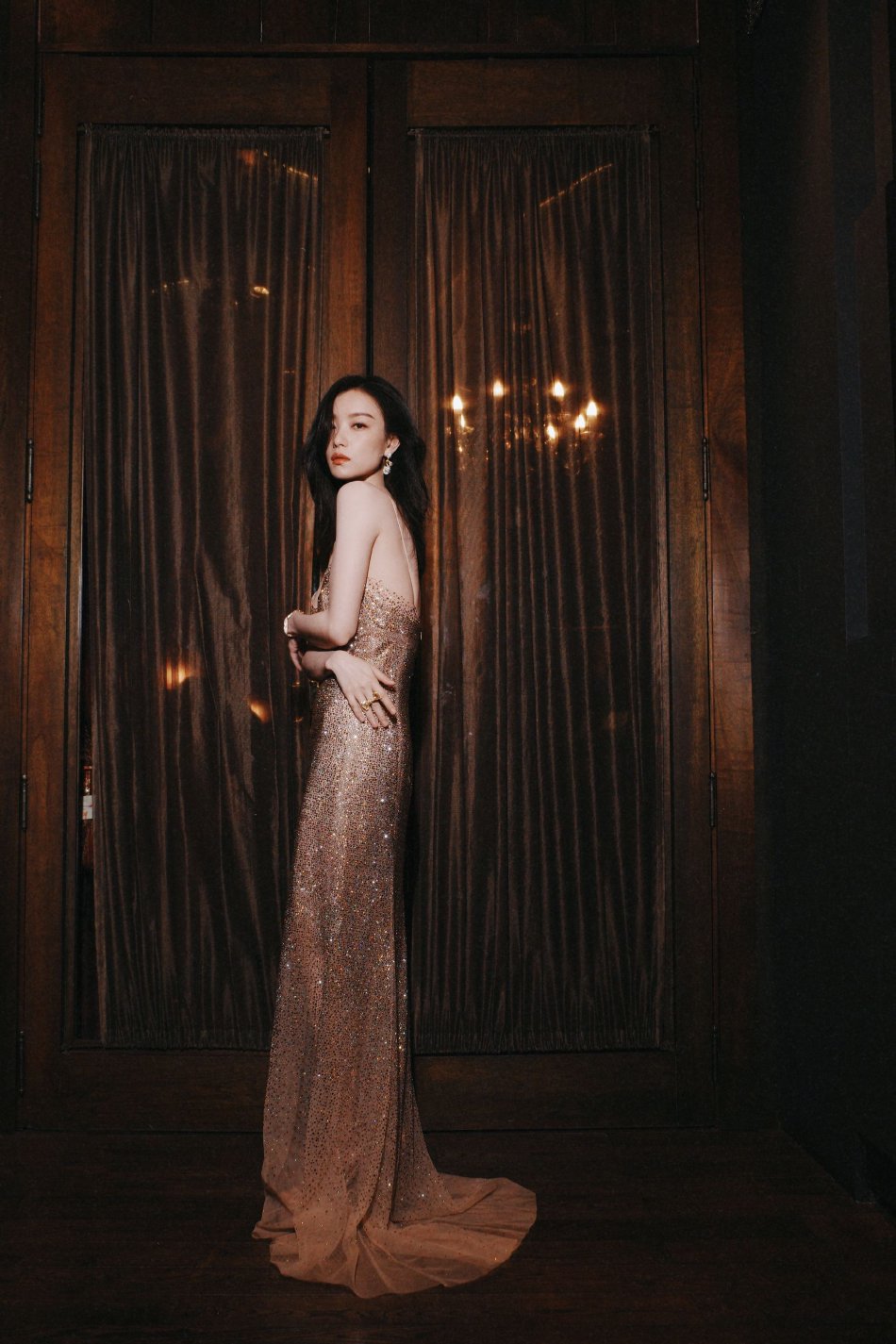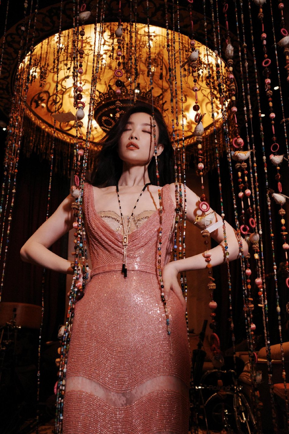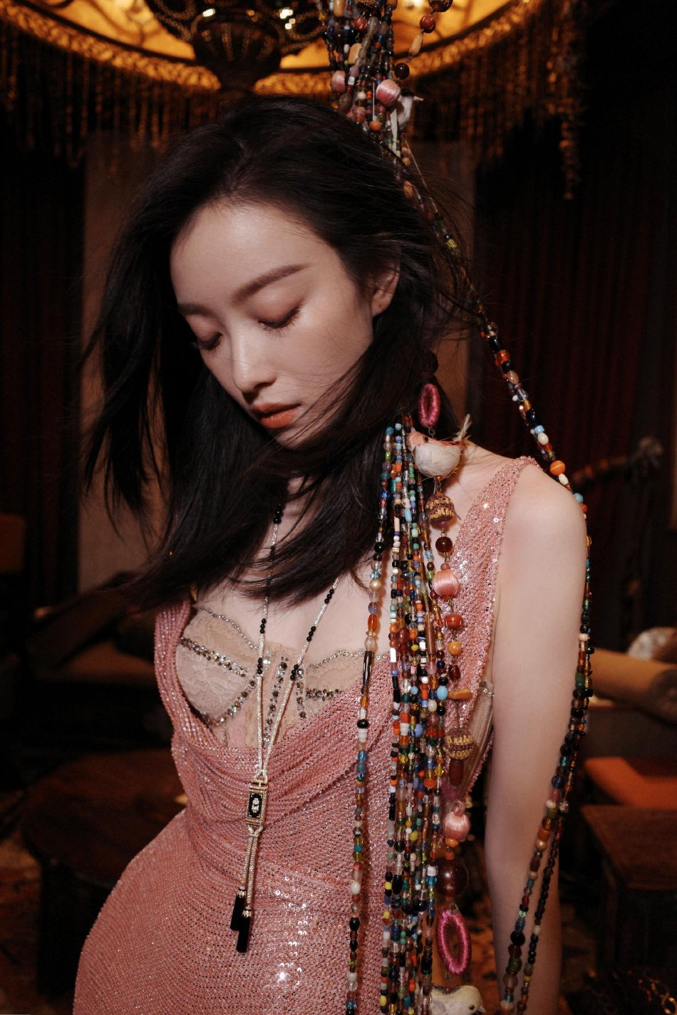 [人物]倪妮穿粉色亮片礼服如美人鱼 长发随性披散锁骨迷人[23P]