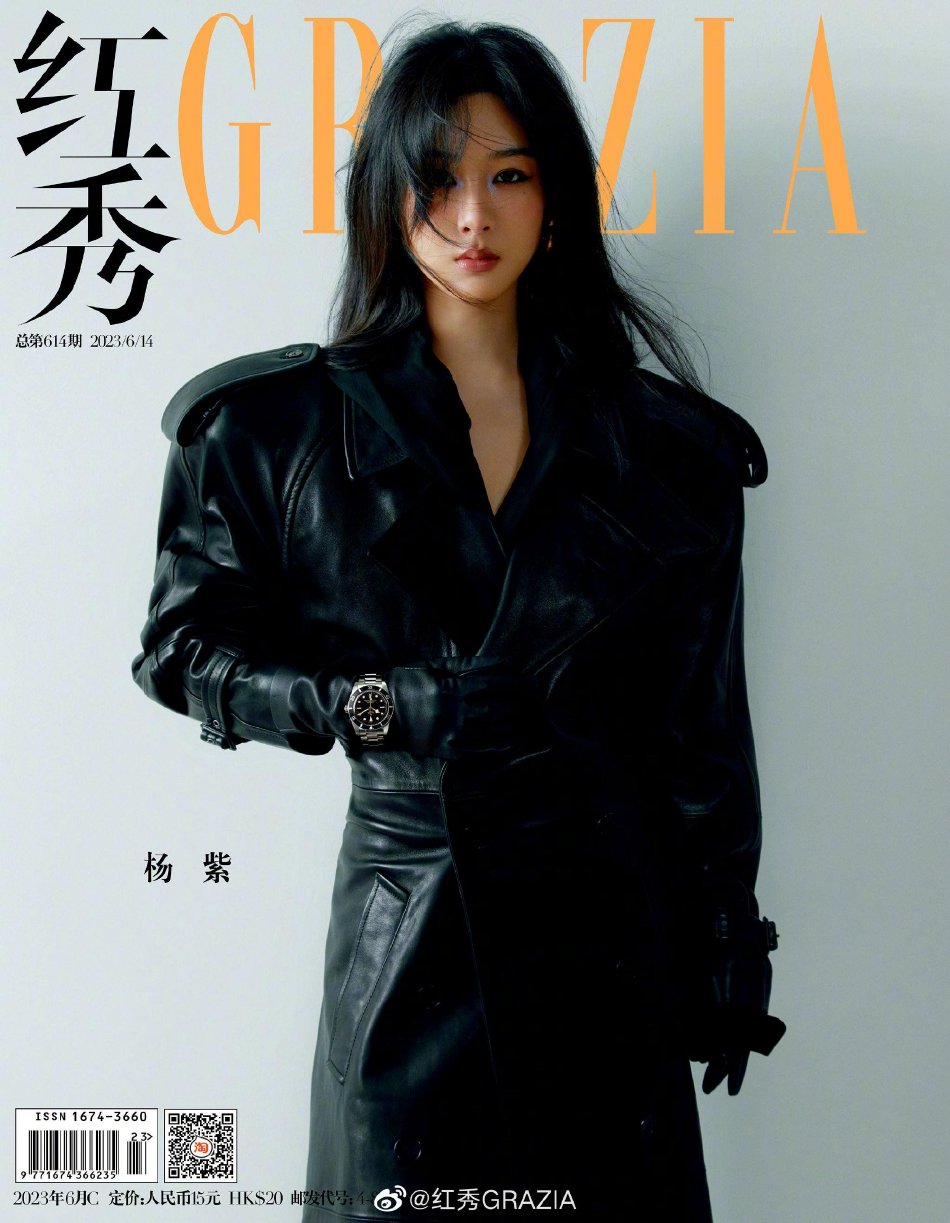 6月12日,杨紫最新杂志大片释出,照片中杨紫在黑色质感皮衣与超大蝴蝶结两套造型中切换,个性张扬诠释不被定义,是酷帅系女神杨紫